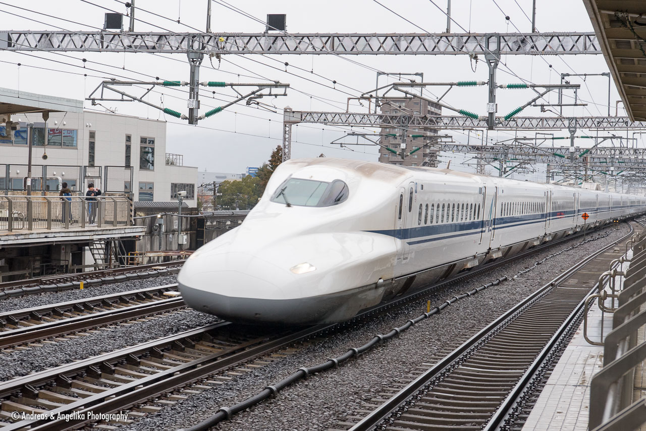 Pictures from a three-week trip to Japan ⎯ Shinkansen train bulleting through Odawara Station