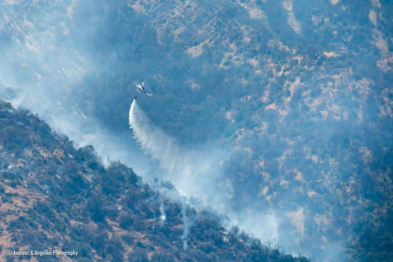 Fire at Manquehue mountain, Santiago de Chile ⎯ Firefighting helicopters bring the fire under control