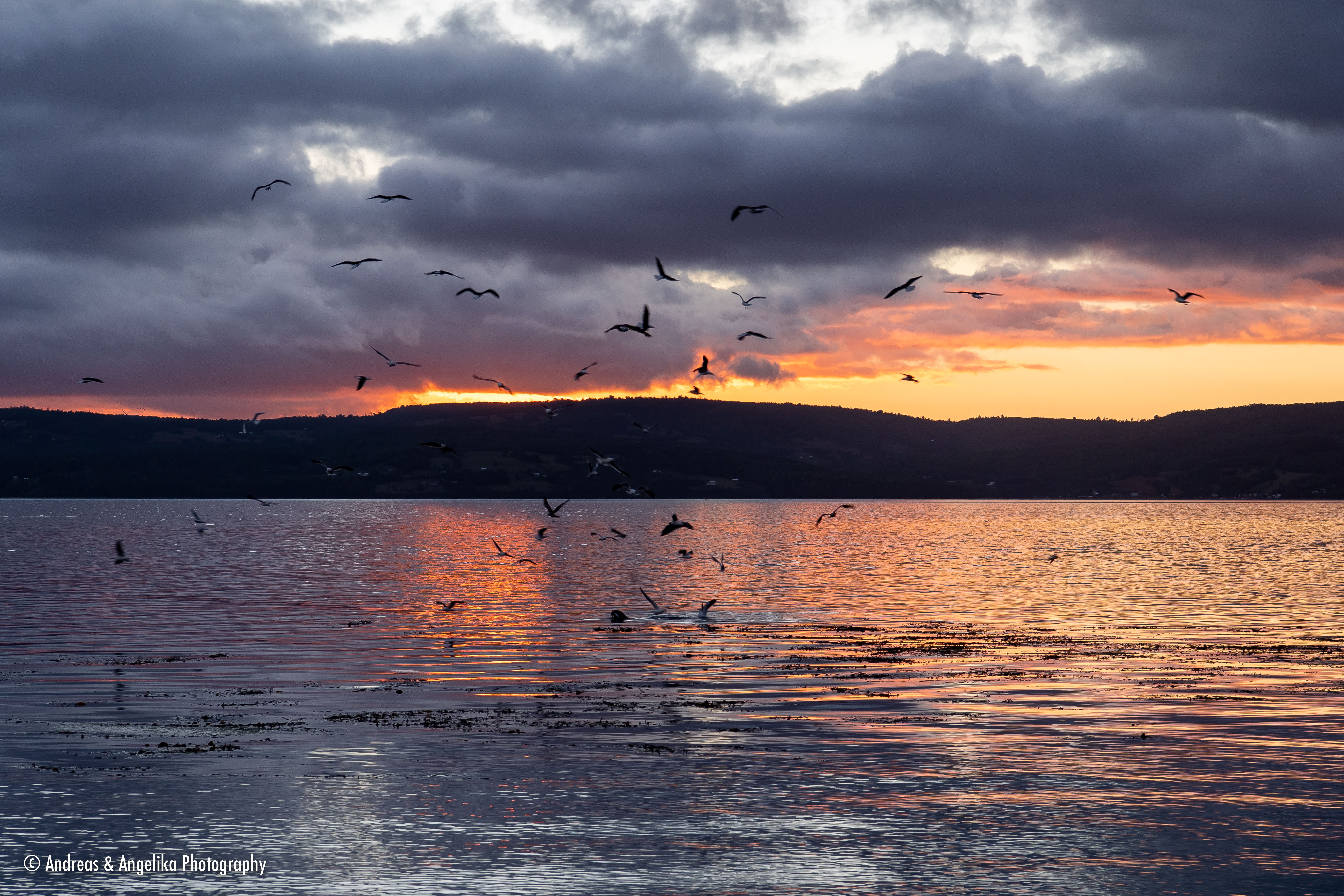 Trip to Chiloé and Puelo ⎯ Seabirds fishing after sunset