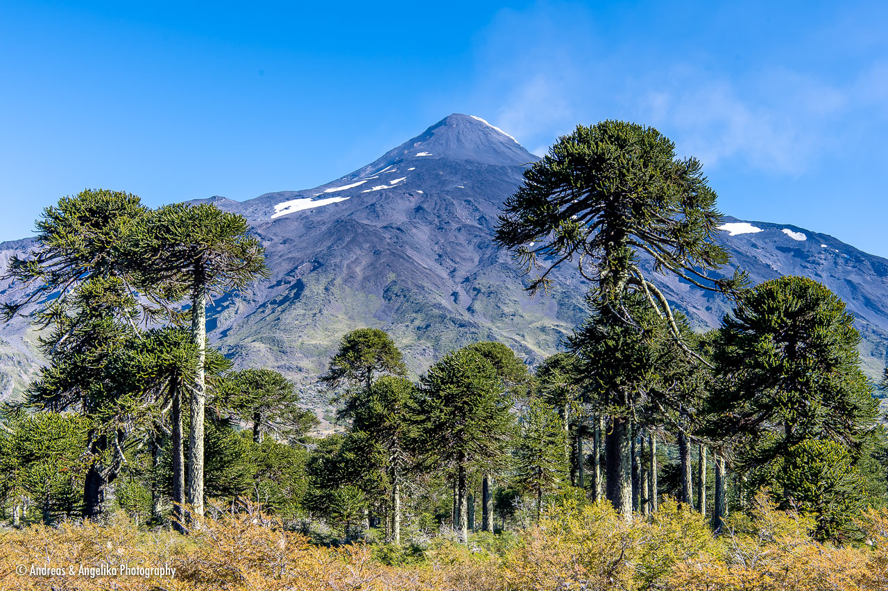 A week at the Pu Am Eco Lodge near Curarrehue ⎯ Lanín volcano with Araucaria trees (Araucaria araucana) on the boarder of Chile and Argentina