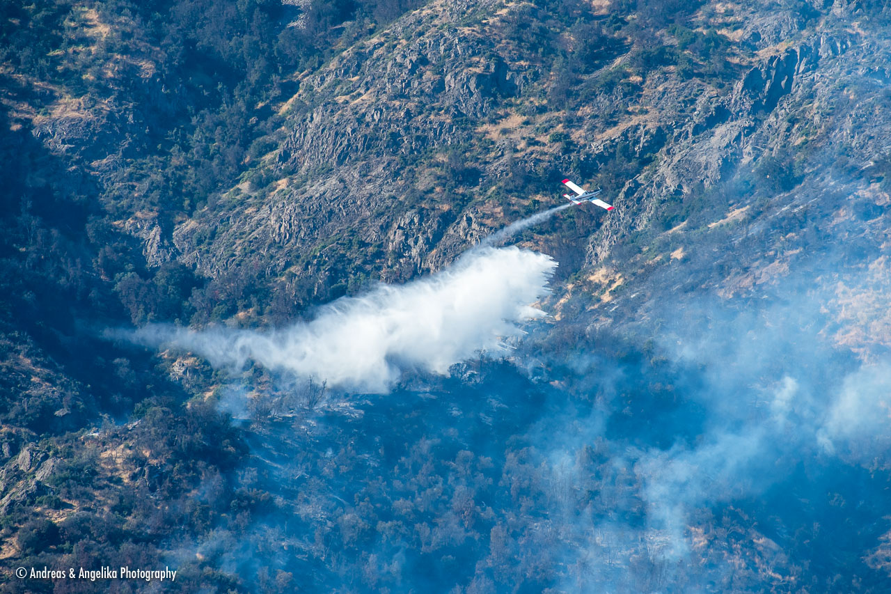 Fire at Manquehue mountain, Santiago de Chile ⎯ Firefighting planes bring the fire under control
