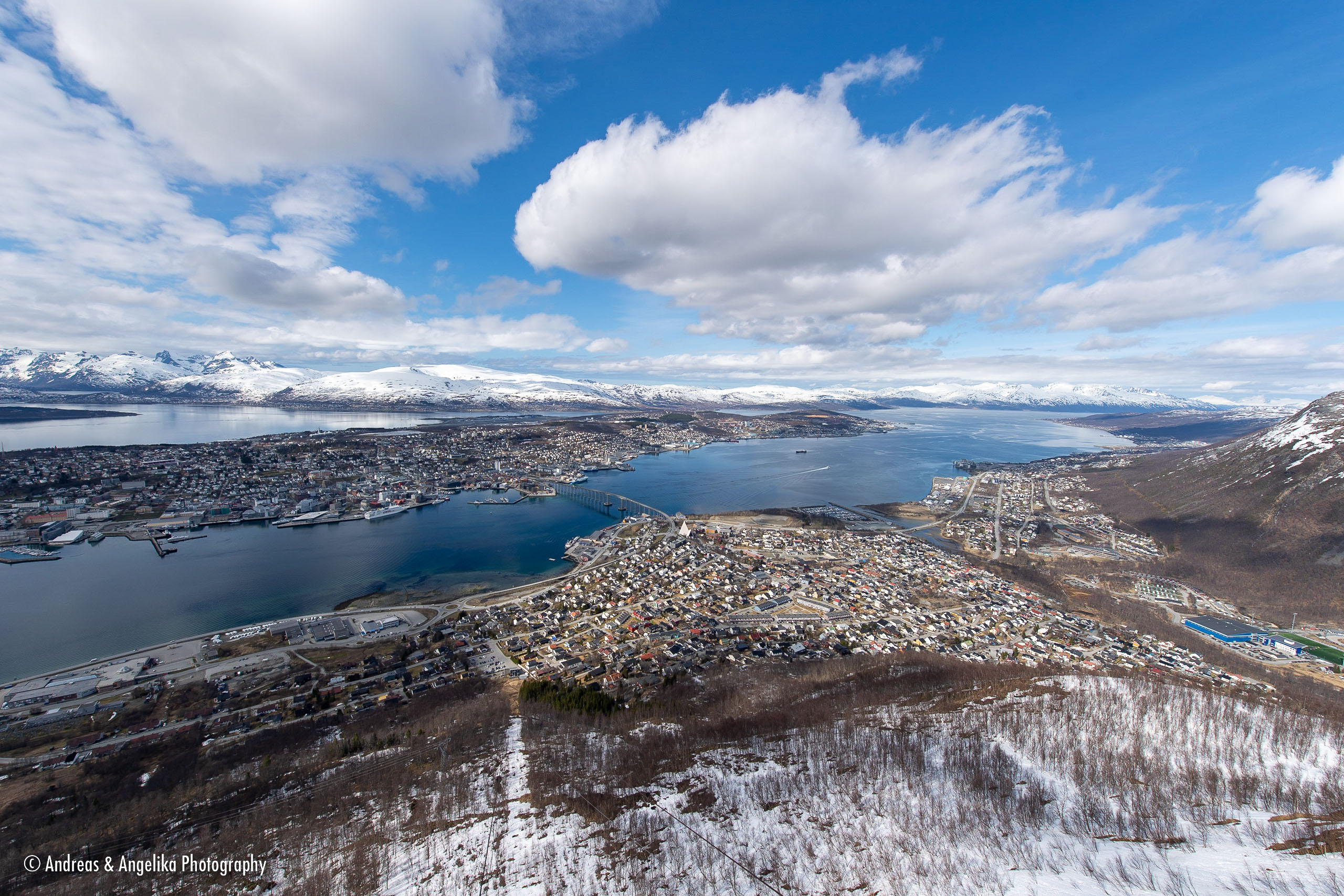 Tour from Tromsø to Bodø by car and back via the Lofoten islands with the Anna-Margaretha. ⎯ View over Tromsø from Fjellstua