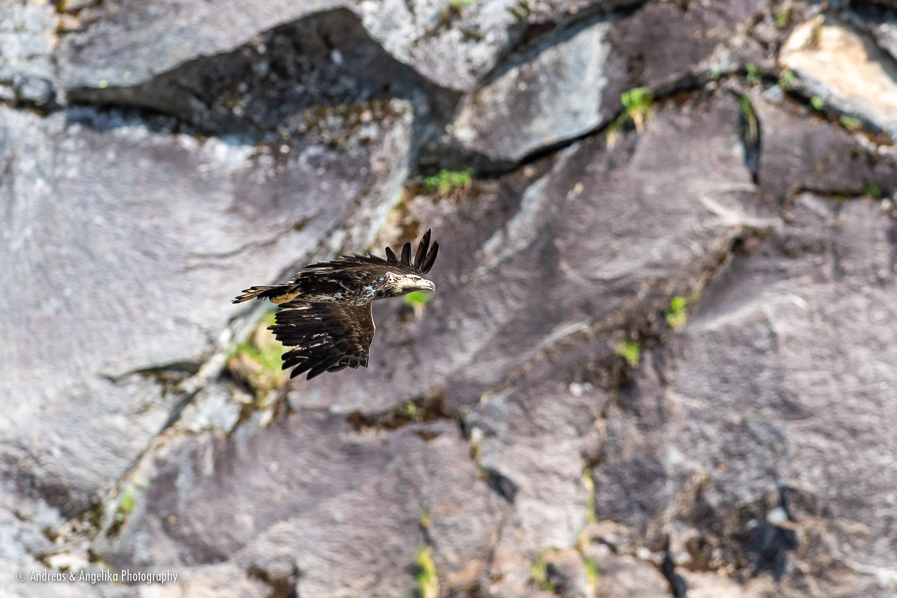 Tour from Tromsø to Bodø by car and back via the Lofoten islands with the Anna-Margaretha. ⎯ White-tailed or Sea Eagle (Haliaeëtus albicilla) patrolling the Trollfjord