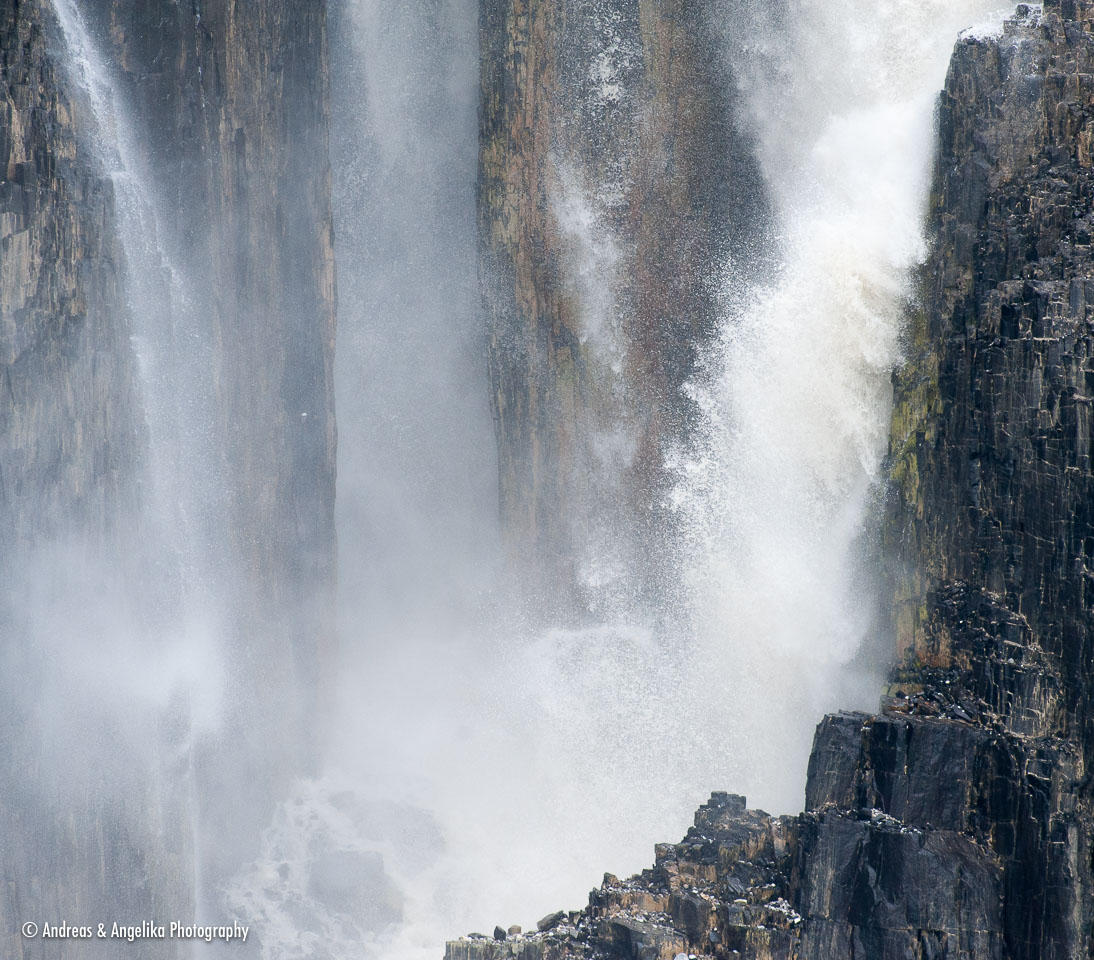 Waterfall at the Alkefjellet bird-cliffs