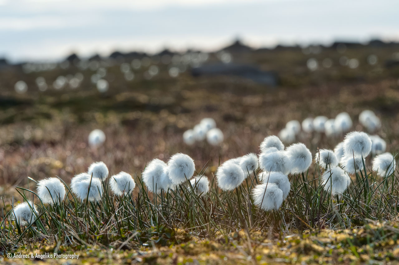 Arctic Cottongrass (Eriophorum scheuchzeri) overlooking Habenichtbukta Bay