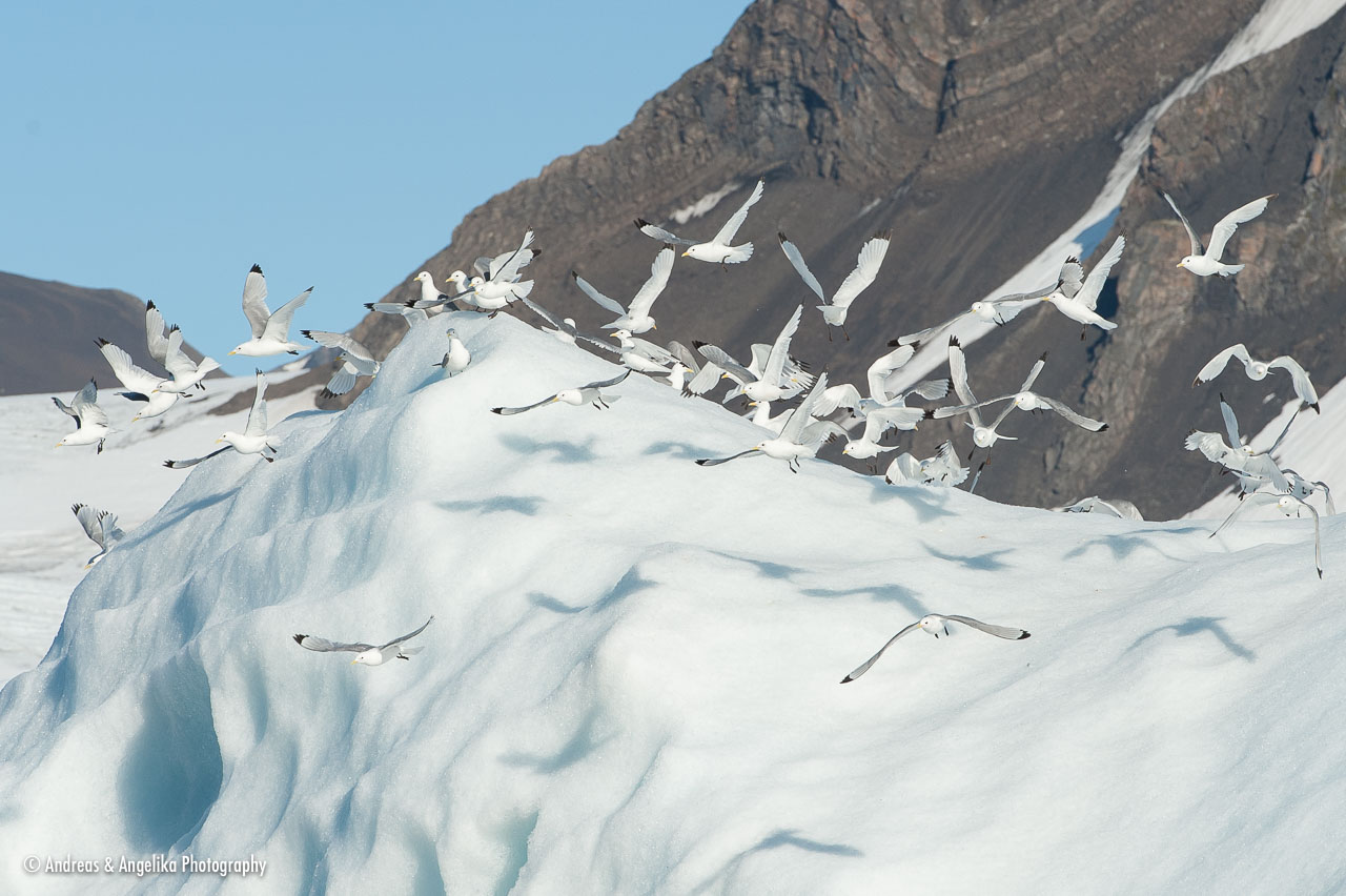 Black-legged Kittiwakes (Rissa tridactyla) in Burgerbukta Bay