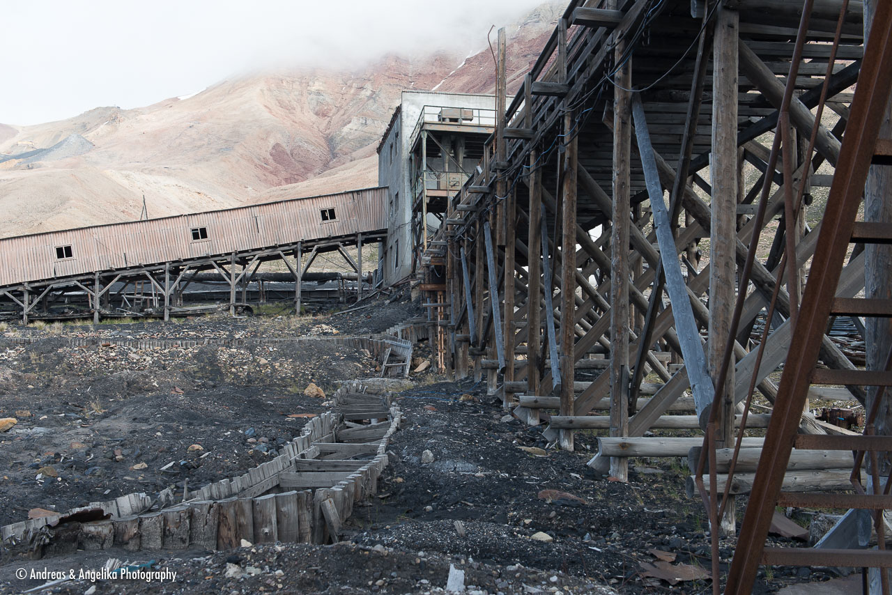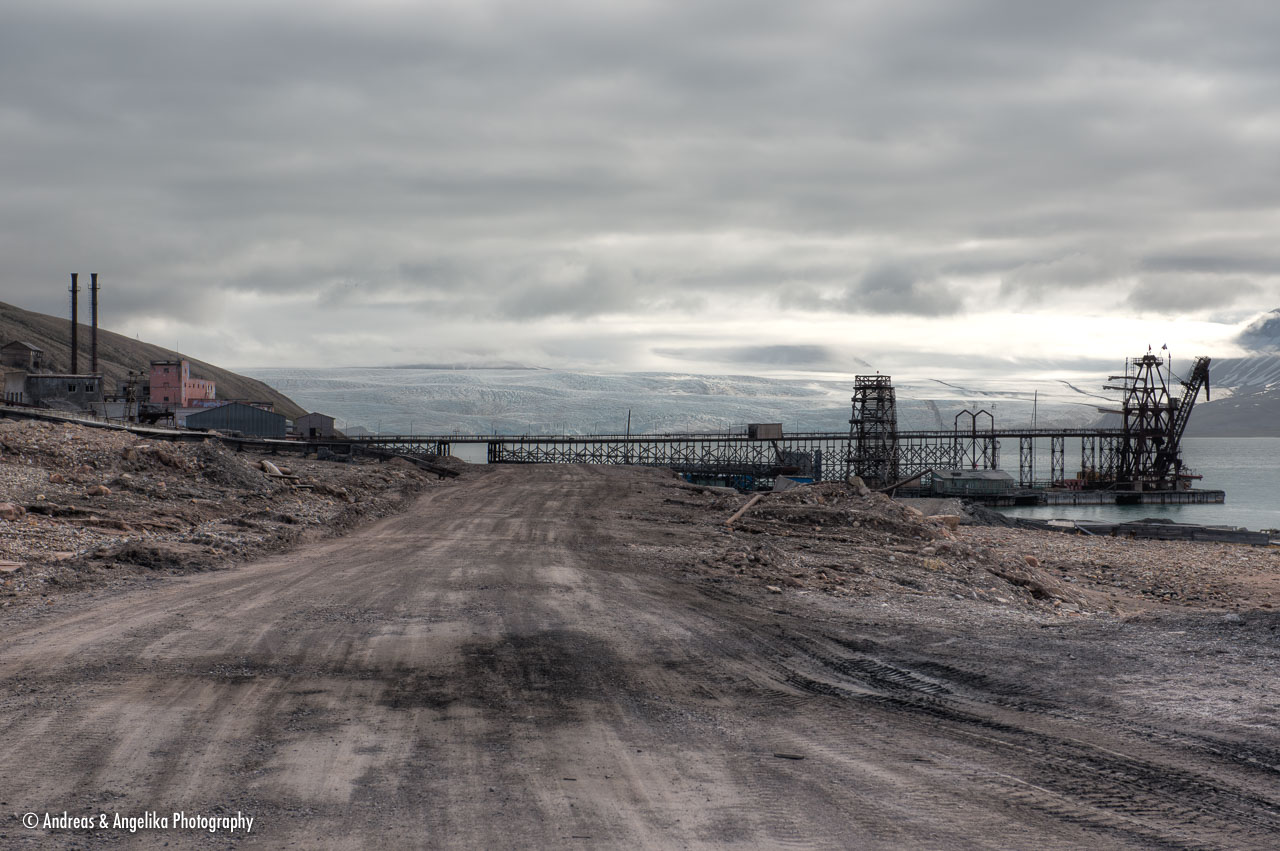 Pyramiden, a Russian black coal mining town in the Billefjord