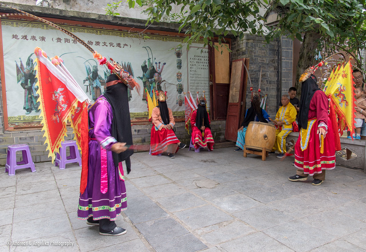 Nuo Opera play in the ancient town of Qingyan