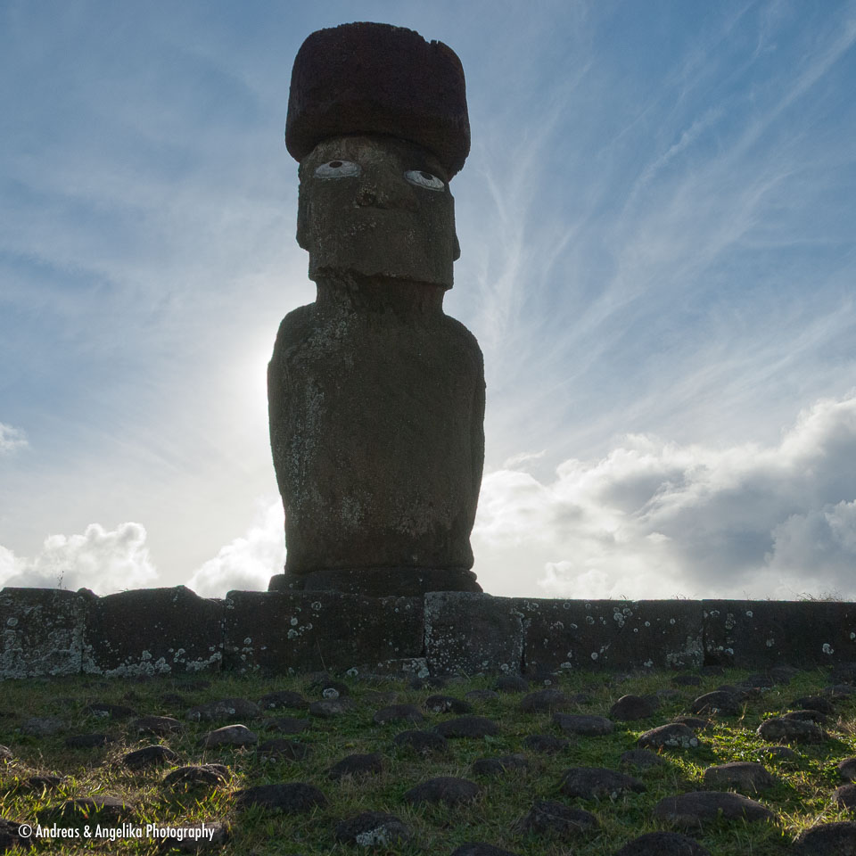 … steht der einzige Moai mit restaurierten Augen.